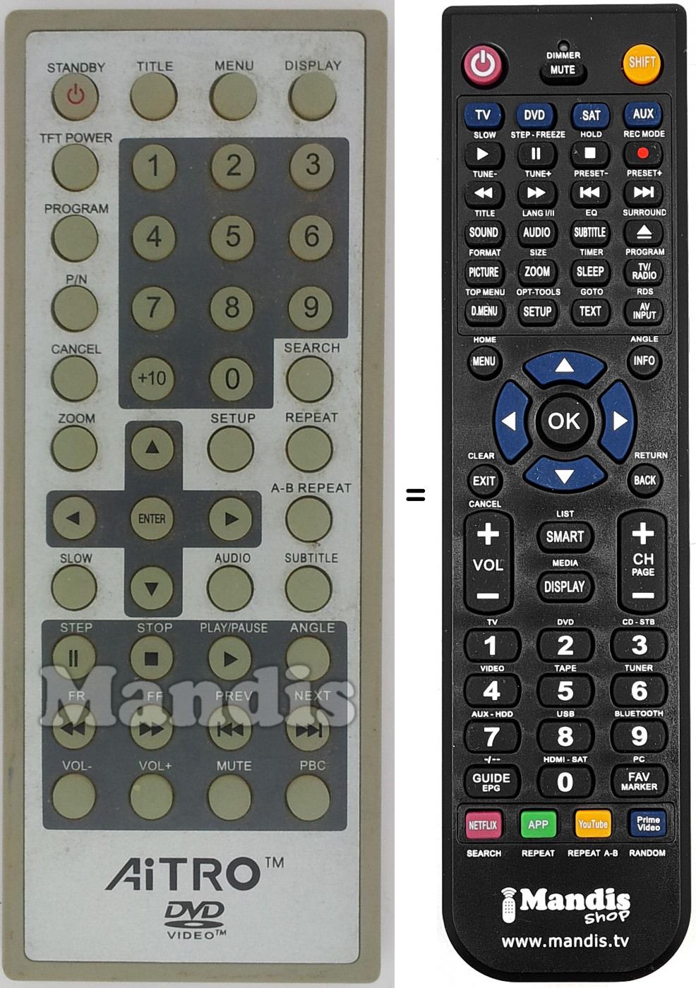 Il telecomando equivalente esegue tutte le funzioni, anche quando il controllo originale controlla vari dispositivi, nel controllo equivalente è possibile programmare diversi dispositivi (TV, DVD, SAT e AUX) in questo modo è possibile includere tutte le funzioni del telecomando originale. Se vedi il manuale dei tasti (istruzioni sul telecomando) puoi verificare che tutte le funzioni siano presenti.