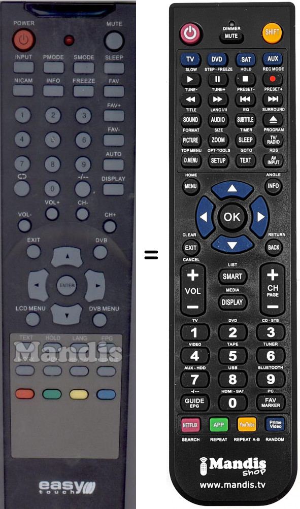 Telecomando che sostituisce l’originale ETL071-32HD in tutte le sue funzioni.
