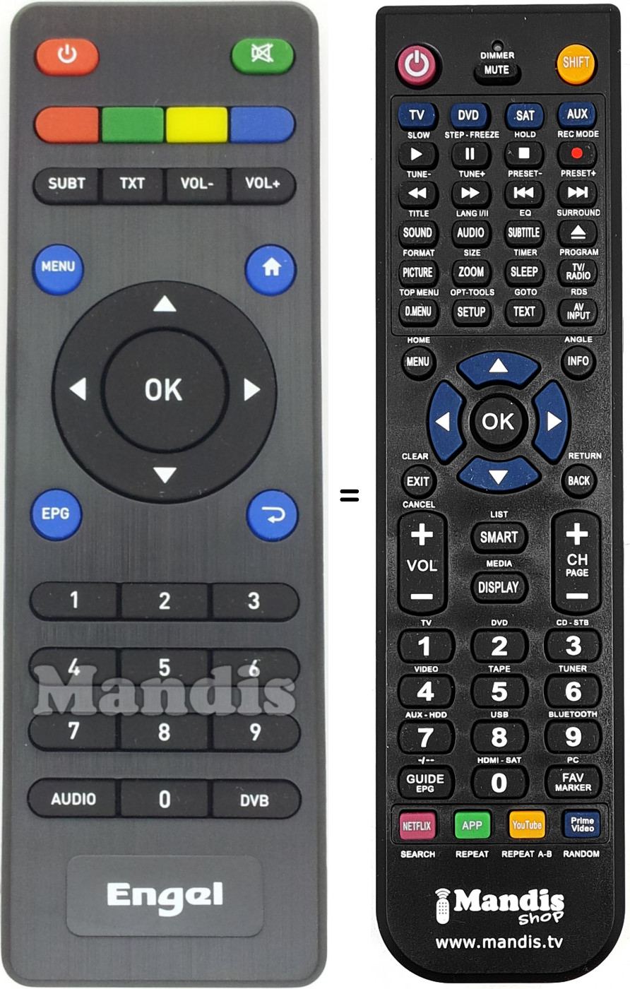 Il telecomando equivalente esegue tutte le funzioni, anche quando il controllo originale controlla vari dispositivi, nel controllo equivalente è possibile programmare diversi dispositivi (TV, DVD, SAT e AUX) in questo modo è possibile includere tutte le funzioni del telecomando originale. Se vedi il manuale dei tasti (istruzioni sul telecomando) puoi verificare che tutte le funzioni siano presenti.