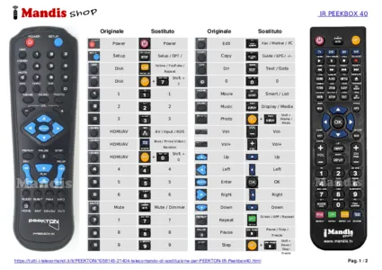 Di seguito, vi mostreremo la corrispondenza tra ciascun pulsante del telecomando originale e il pulsante che svolge la stessa funzione sul telecomando di sostituzione. In alcuni casi, potrebbe essere necessario premere il tasto SHIFT prima di premere un altro pulsante per eseguire determinate azioni. Queste funzioni aggiuntive sono spesso poco utilizzate e sono incluse per facilitare la comprensione del telecomando di sostituzione, o perché il telecomando originale ha più pulsanti rispetto al suo equivalente.