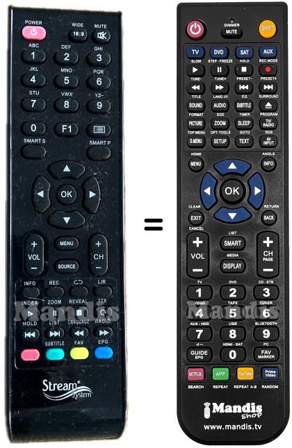 Di seguito, vi mostreremo la corrispondenza tra ciascun pulsante del telecomando originale e il pulsante che svolge la stessa funzione sul telecomando di sostituzione. In alcuni casi, potrebbe essere necessario premere il tasto SHIFT prima di premere un altro pulsante per eseguire determinate azioni. Queste funzioni aggiuntive sono spesso poco utilizzate e sono incluse per facilitare la comprensione del telecomando di sostituzione, o perché il telecomando originale ha più pulsanti rispetto al suo equivalente.