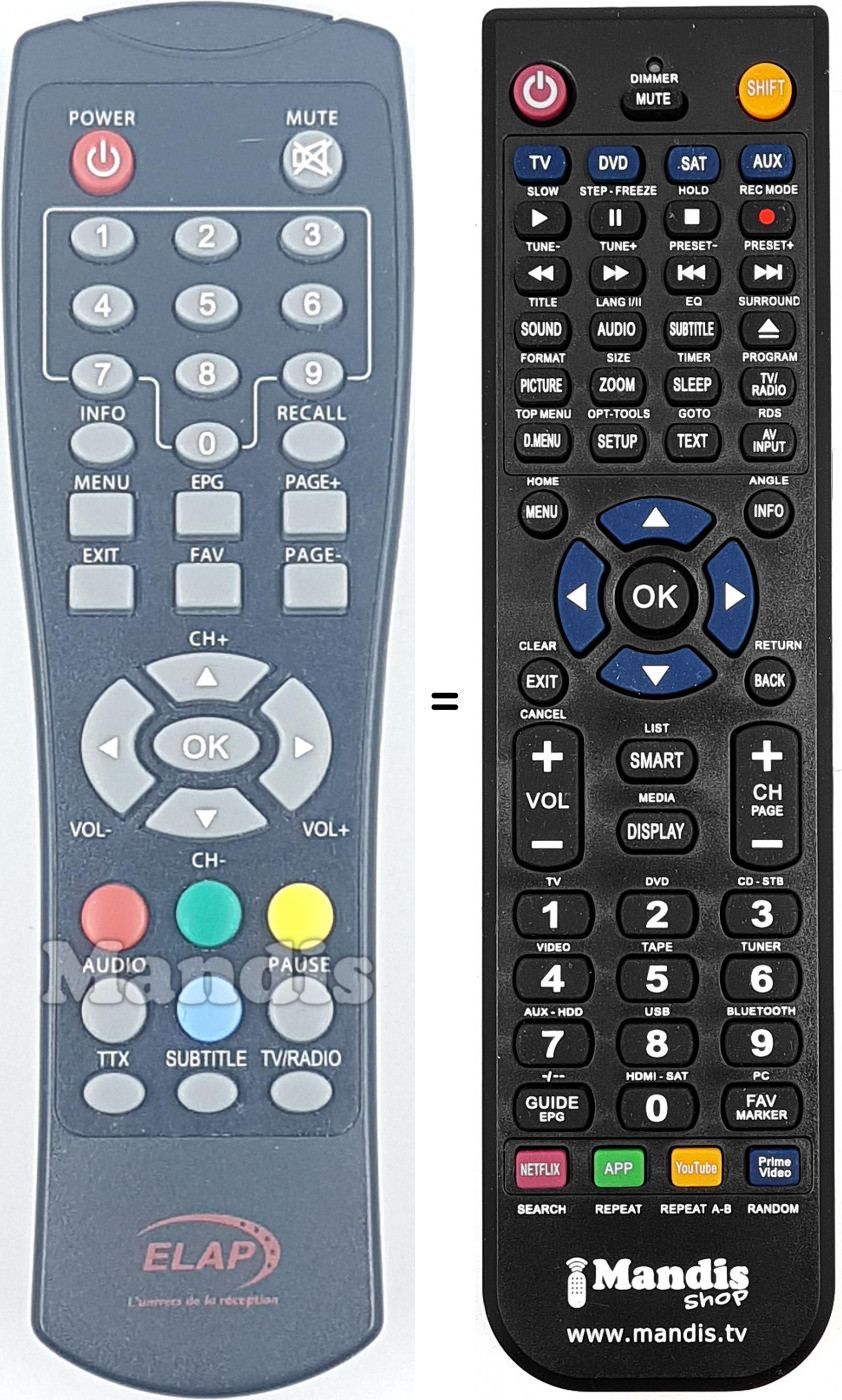 Il telecomando equivalente esegue tutte le funzioni, anche quando il controllo originale controlla vari dispositivi, nel controllo equivalente è possibile programmare diversi dispositivi (TV, DVD, SAT e AUX) in questo modo è possibile includere tutte le funzioni del telecomando originale. Se vedi il manuale dei tasti (istruzioni sul telecomando) puoi verificare che tutte le funzioni siano presenti.
