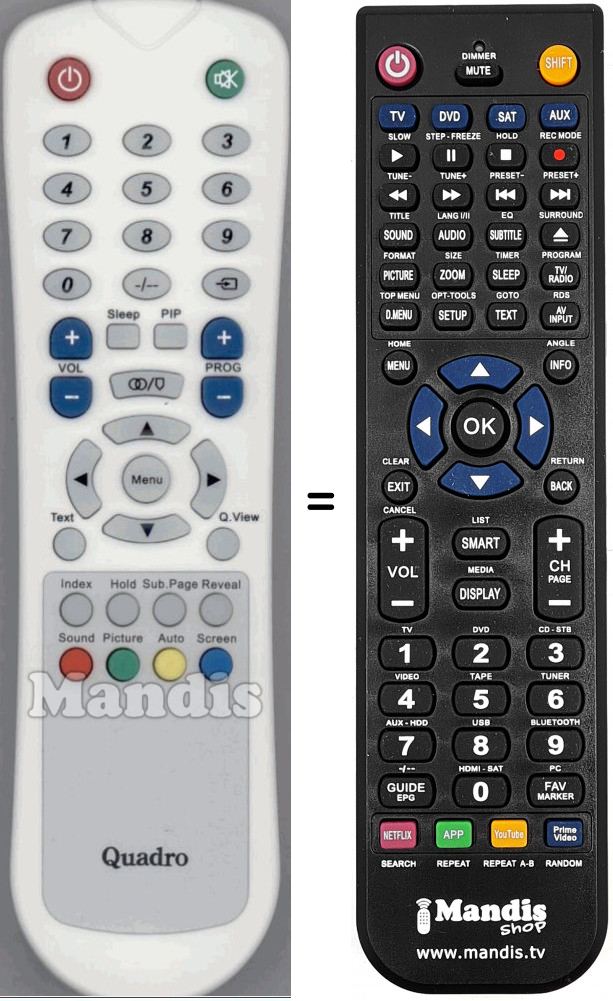 Telecomando che sostituisce l’originale TFT-30XT1 in tutte le sue funzioni.