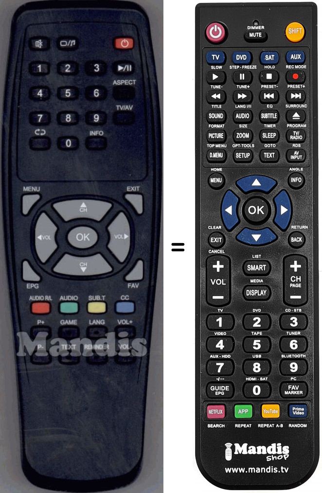 Telecomando che sostituisce l’originale in tutte le sue funzioni. Non si tratta di un telecomando universale ma di un telecomando che sostituisce l’originale. Riceverà il telecomando completamente pronto per il suo funzionamento, deve solo mettere le pile. Non è necessario programmarlo. Le diamo garanzia totale che il telecomando compirà le stesse funzioni del telecomando originale.