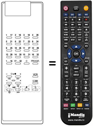 Telecomando che sostituisce l’originale in tutte le sue funzioni. Non si tratta di un telecomando universale ma di un telecomando che sostituisce l’originale. Riceverà il telecomando completamente pronto per il suo funzionamento, deve solo mettere le pile. Non è necessario programmarlo. Le diamo garanzia totale che il telecomando compirà le stesse funzioni del telecomando originale.