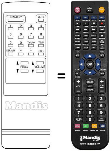 Telecomando che sostituisce l’originale in tutte le sue funzioni. Non si tratta di un telecomando universale ma di un telecomando che sostituisce l’originale. Riceverà il telecomando completamente pronto per il suo funzionamento, deve solo mettere le pile. Non è necessario programmarlo. Le diamo garanzia totale che il telecomando compirà le stesse funzioni del telecomando originale.