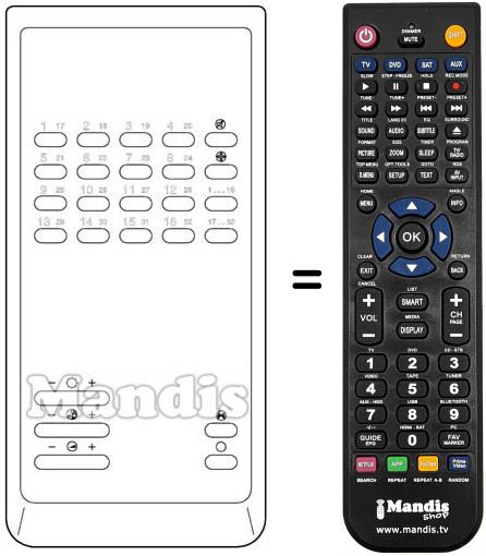 Telecomando che sostituisce l’originale in tutte le sue funzioni. Non si tratta di un telecomando universale ma di un telecomando che sostituisce l’originale. Riceverà il telecomando completamente pronto per il suo funzionamento, deve solo mettere le pile. Non è necessario programmarlo. Le diamo garanzia totale che il telecomando compirà le stesse funzioni del telecomando originale.