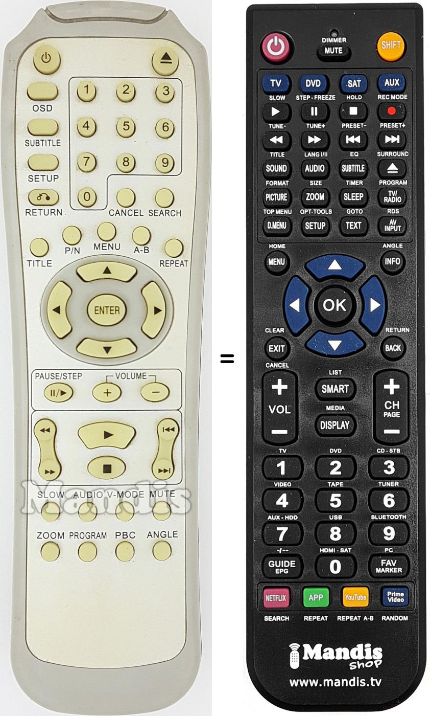 Il telecomando equivalente esegue tutte le funzioni, anche quando il controllo originale controlla vari dispositivi, nel controllo equivalente è possibile programmare diversi dispositivi (TV, DVD, SAT e AUX) in questo modo è possibile includere tutte le funzioni del telecomando originale. Se vedi il manuale dei tasti (istruzioni sul telecomando) puoi verificare che tutte le funzioni siano presenti.