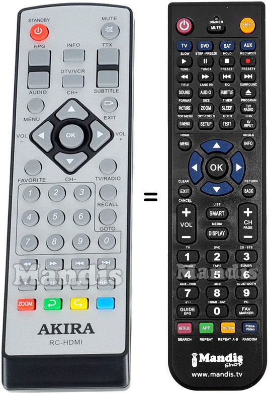 Questo telecomando sostituisce completamente il tuo RC-HDMI e offre tutte le funzioni dell'originale.