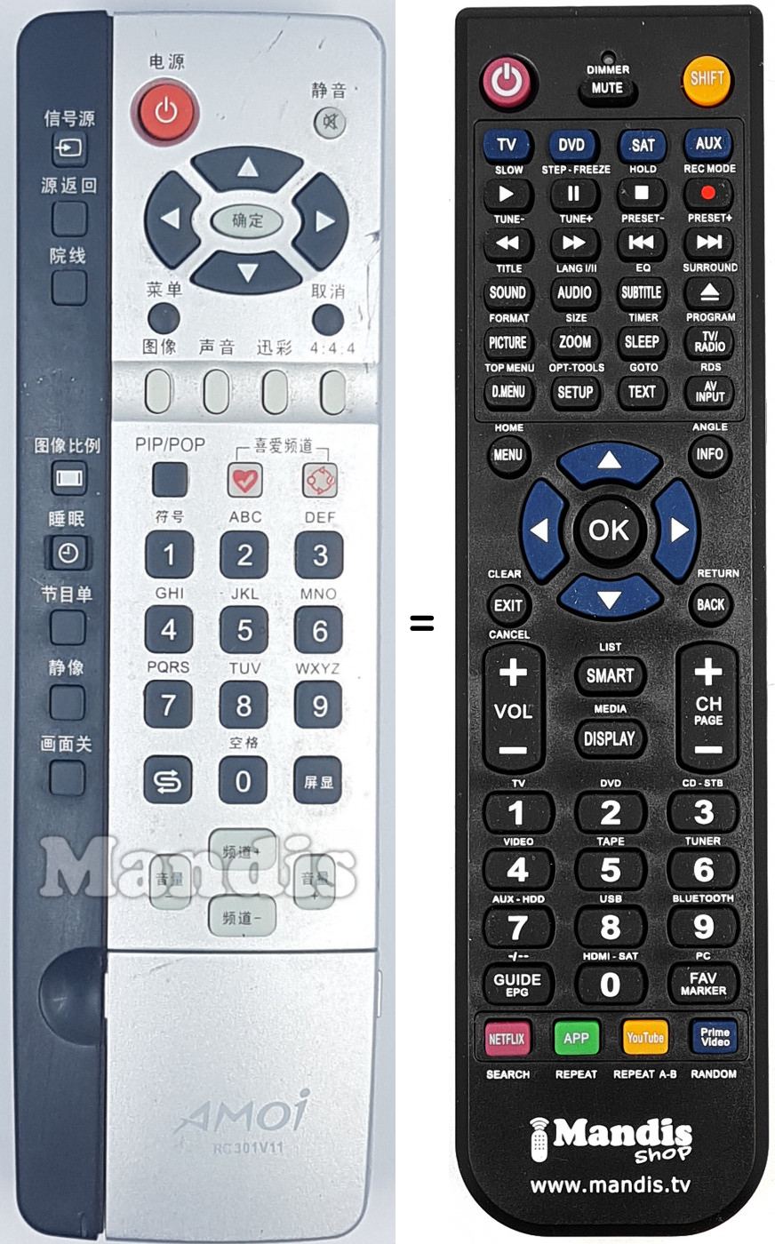 Il telecomando equivalente esegue tutte le funzioni, anche quando il controllo originale controlla vari dispositivi, nel controllo equivalente è possibile programmare diversi dispositivi (TV, DVD, SAT e AUX) in questo modo è possibile includere tutte le funzioni del telecomando originale. Se vedi il manuale dei tasti (istruzioni sul telecomando) puoi verificare che tutte le funzioni siano presenti.