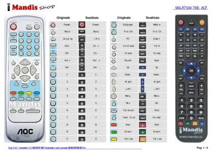 Di seguito, vi mostreremo la corrispondenza tra ciascun pulsante del telecomando originale e il pulsante che svolge la stessa funzione sul telecomando di sostituzione. In alcuni casi, potrebbe essere necessario premere il tasto SHIFT prima di premere un altro pulsante per eseguire determinate azioni. Queste funzioni aggiuntive sono spesso poco utilizzate e sono incluse per facilitare la comprensione del telecomando di sostituzione, o perché il telecomando originale ha più pulsanti rispetto al suo equivalente.