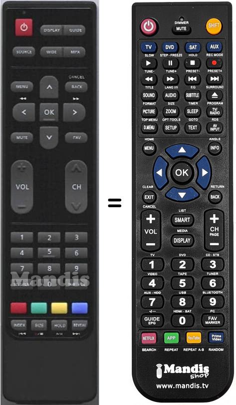Telecomando che sostituisce l’originale in tutte le sue funzioni.