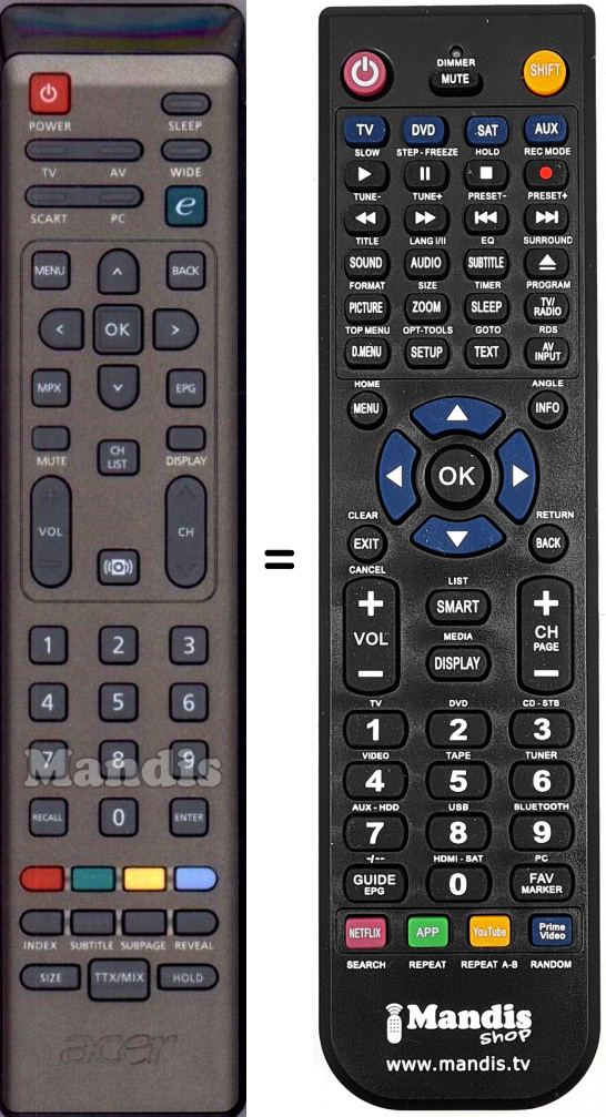 Telecomando che sostituisce l’originale in tutte le sue funzioni.