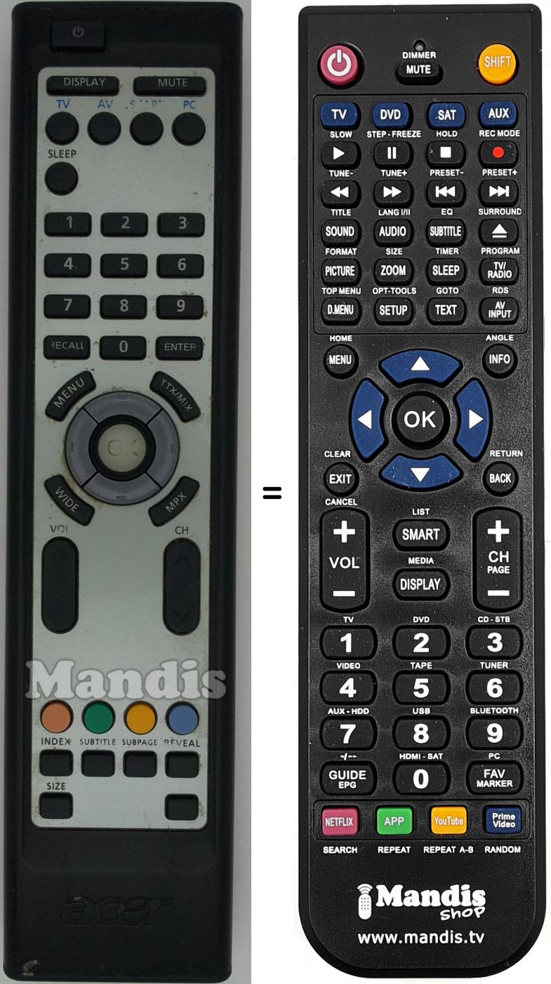 Telecomando che sostituisce l’originale in tutte le sue funzioni.