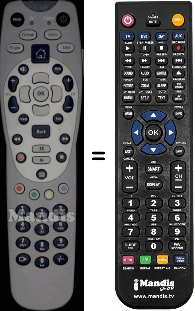 Telecomando che sostituisce l’originale in tutte le sue funzioni.