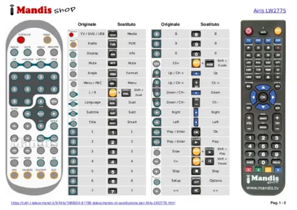 Questo telecomando sostituisce completamente il tuo LW277S e offre tutte le funzioni dell'originale.