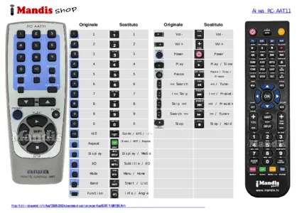 Questo telecomando sostituisce completamente il tuo RC-AAT 11 (U0051355U) e offre tutte le funzioni dell'originale.