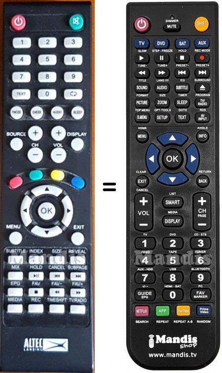 Questo telecomando sostituisce completamente il tuo AL-TV40FHD-001 e offre tutte le funzioni dell'originale.