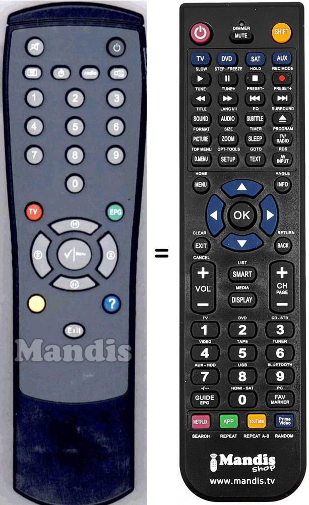 Telecomando che sostituisce l’originale in tutte le sue funzioni.
