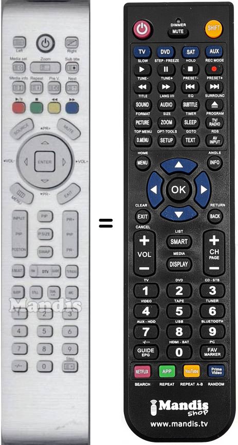 Telecomando che sostituisce l’originale in tutte le sue funzioni.