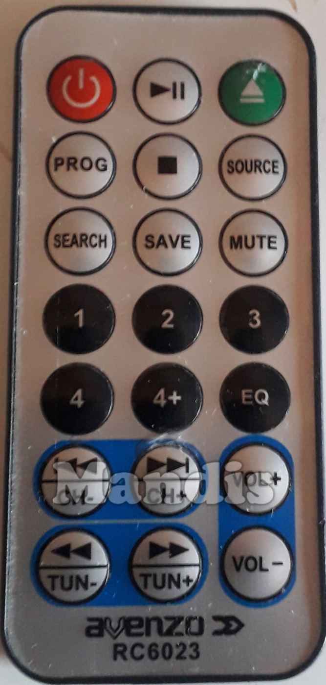 Telecomando originale RC6023 che serve per impianto hi-fi della marca Avenzo. Si tratta di un modello originale di telecomando.