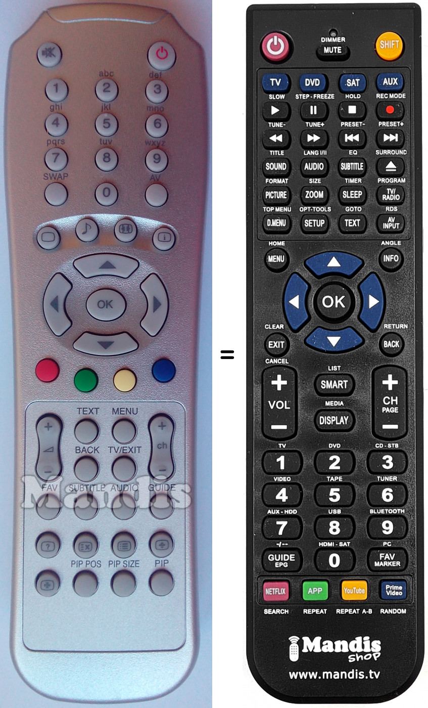Telecomando che sostituisce l’originale in tutte le sue funzioni.