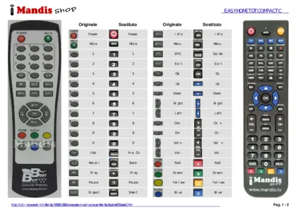Questo telecomando sostituisce completamente il tuo EasyhomeTDTCompactC e offre tutte le funzioni dell'originale.