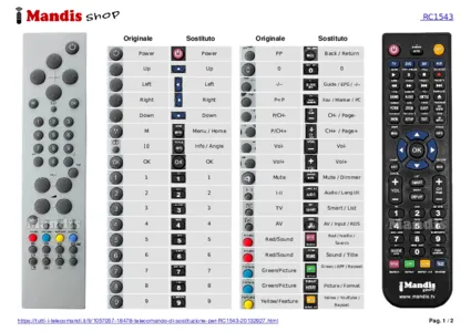 Questo telecomando sostituisce completamente il tuo RC 1543 (08001013) e offre tutte le funzioni dell'originale.