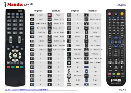 Questo telecomando sostituisce completamente il tuo RC1059 (30067042) e offre tutte le funzioni dell'originale.