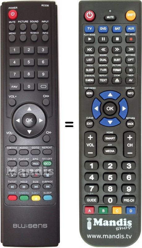 Este comando substitui completamente o seu RC036 e oferece todas as funções do original.