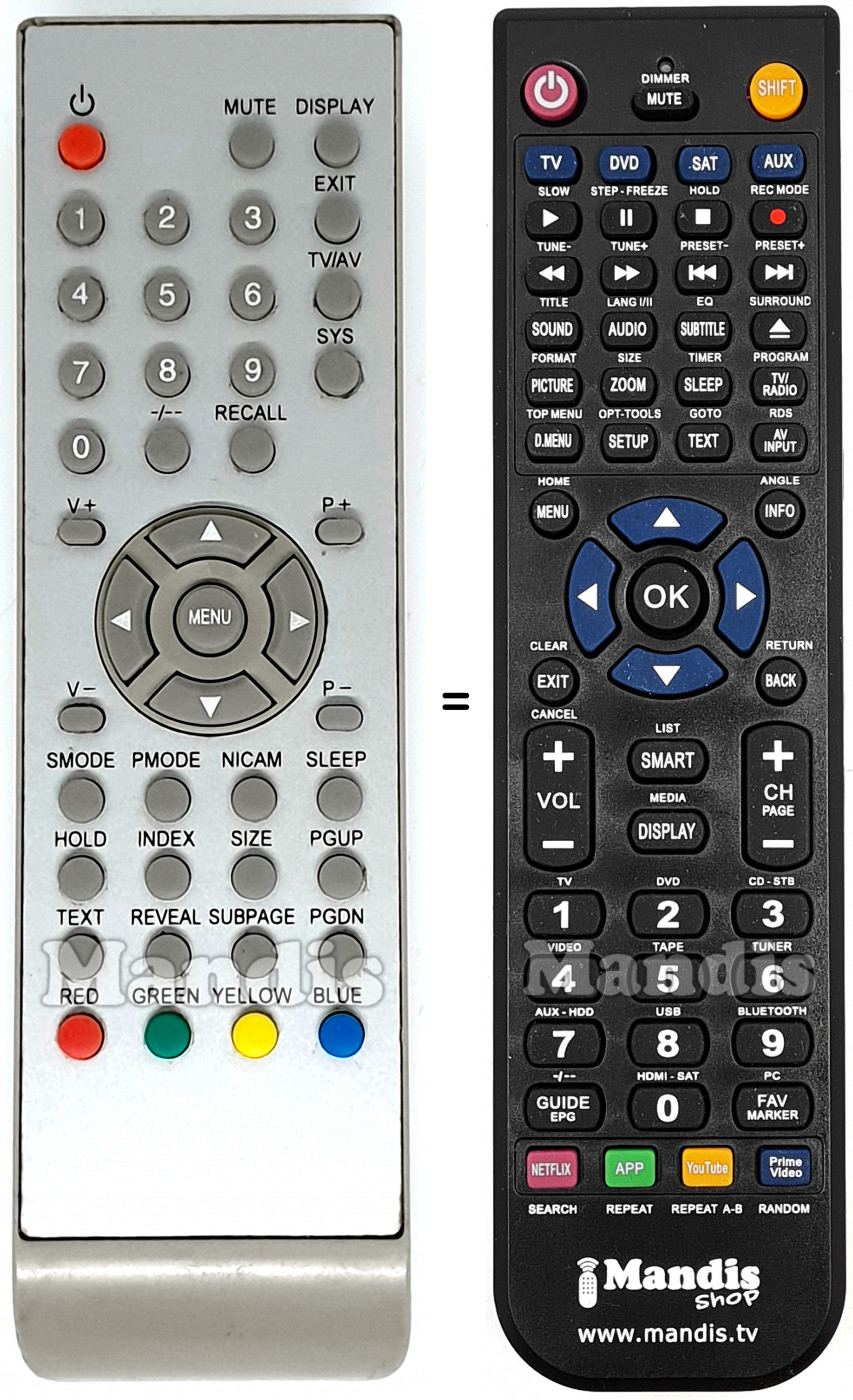 Di seguito, vi mostreremo la corrispondenza tra ciascun pulsante del telecomando originale e il pulsante che svolge la stessa funzione sul telecomando di sostituzione. In alcuni casi, potrebbe essere necessario premere il tasto SHIFT prima di premere un altro pulsante per eseguire determinate azioni. Queste funzioni aggiuntive sono spesso poco utilizzate e sono incluse per facilitare la comprensione del telecomando di sostituzione, o perché il telecomando originale ha più pulsanti rispetto al suo equivalente.