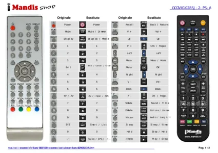 Questo telecomando sostituisce completamente il tuo GCOVA1028SJ-2-PS-A e offre tutte le funzioni dell'originale.