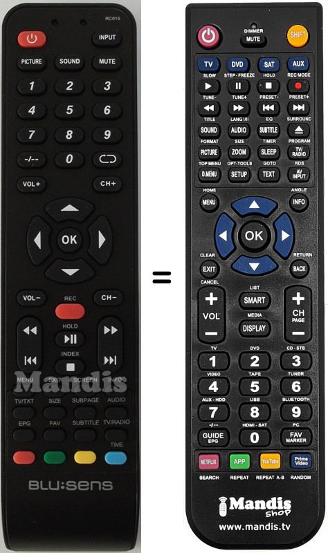 Telecomando che sostituisce l’originale RC015 in tutte le sue funzioni.