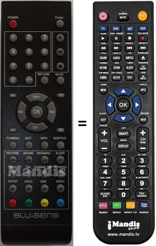 Telecomando che sostituisce l’originale in tutte le sue funzioni.