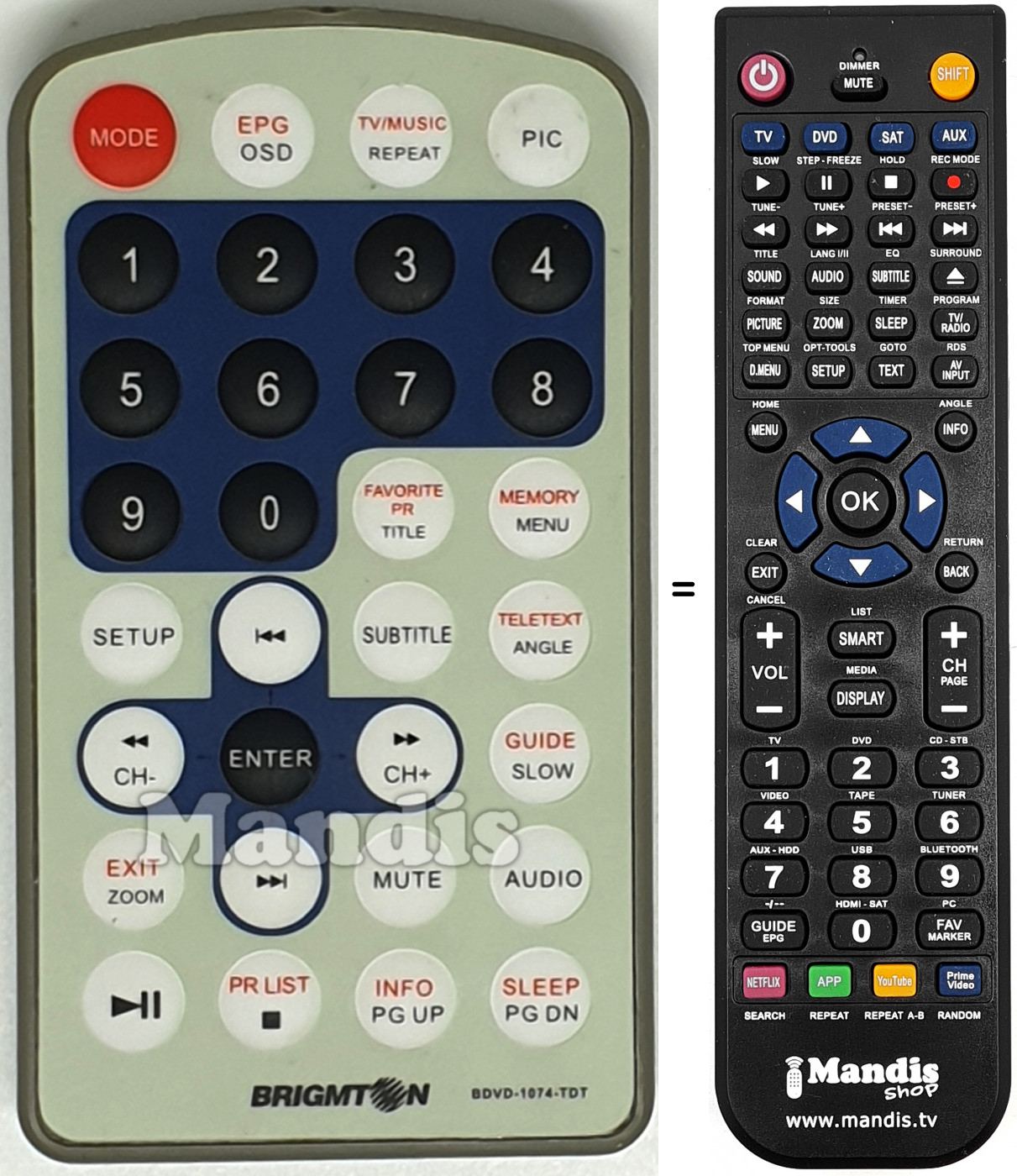 Inizio > Marche > Telecomandi Brigmton > Telecomando per BRIGMTON BDVD-1074-TDT