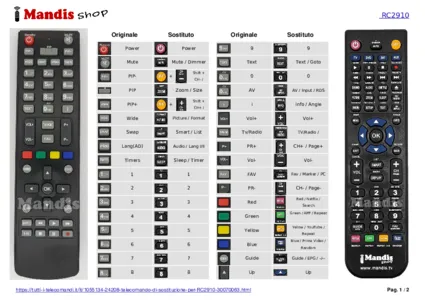 Questo telecomando sostituisce completamente il tuo RC2910 e offre tutte le funzioni dell'originale.