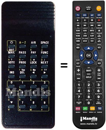 Telecomando che sostituisce l’originale in tutte le sue funzioni. Non si tratta di un telecomando universale ma di un telecomando che sostituisce l’originale. Riceverà il telecomando completamente pronto per il suo funzionamento, deve solo mettere le pile. Non è necessario programmarlo. Le diamo garanzia totale che il telecomando compirà le stesse funzioni del telecomando originale.