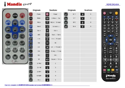 Questo telecomando sostituisce completamente il tuo REMCON1484 e offre tutte le funzioni dell'originale.