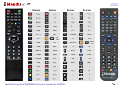 È incluso un documento per aiutarti a utilizzare facilmente il nuovo telecomando, indicando la corrispondenza dei pulsanti.