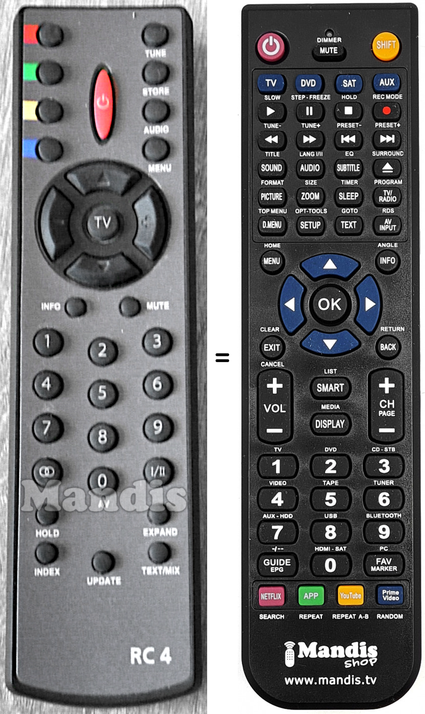 Telecomando che sostituisce l’originale in tutte le sue funzioni.
