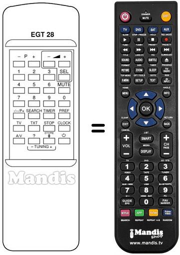 Telecomando che sostituisce l’originale EGT 28 in tutte le sue funzioni.