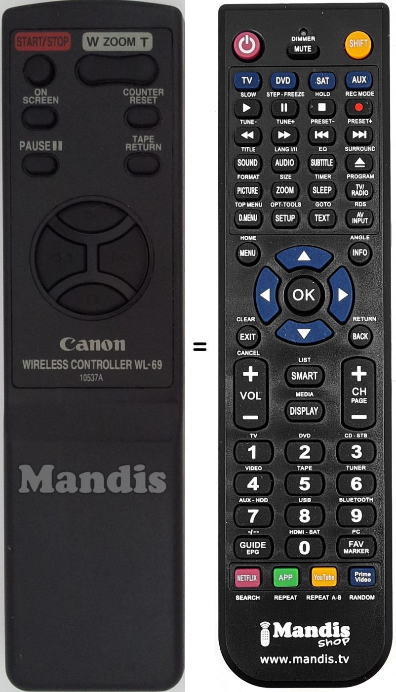 Telecomando ricambio 10537A (WL-69) della marca Canon.