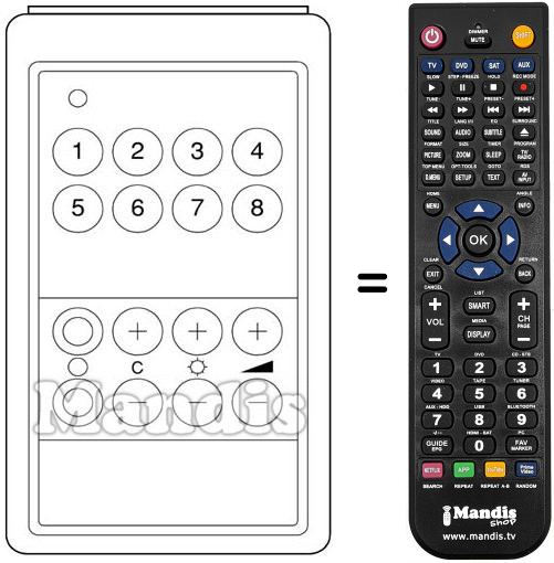 Telecomando che sostituisce l’originale in tutte le sue funzioni. Non si tratta di un telecomando universale ma di un telecomando che sostituisce l’originale. Riceverà il telecomando completamente pronto per il suo funzionamento, deve solo mettere le pile. Non è necessario programmarlo. Le diamo garanzia totale che il telecomando compirà le stesse funzioni del telecomando originale.