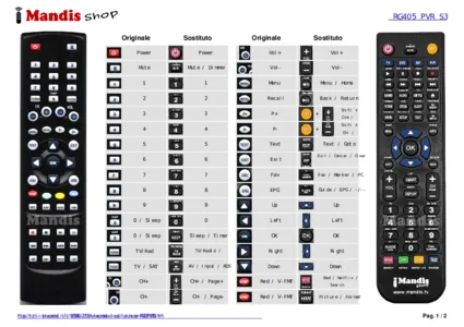 Questo telecomando sostituisce completamente il tuo RG405PVRS3 e offre tutte le funzioni dell'originale.