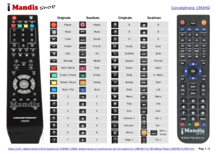 Este comando substitui completamente o seu CM3HD Full HD Media Player (CM3HD-FullHD) e oferece todas as funções do original.