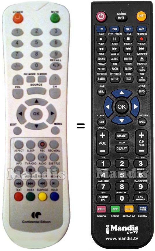 Questo telecomando sostituisce completamente il tuo CETVLCD156SDB2 e offre tutte le funzioni dell'originale.