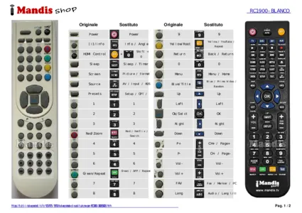 Questo telecomando sostituisce completamente il tuo RC1900 (30065008) e offre tutte le funzioni dell'originale.