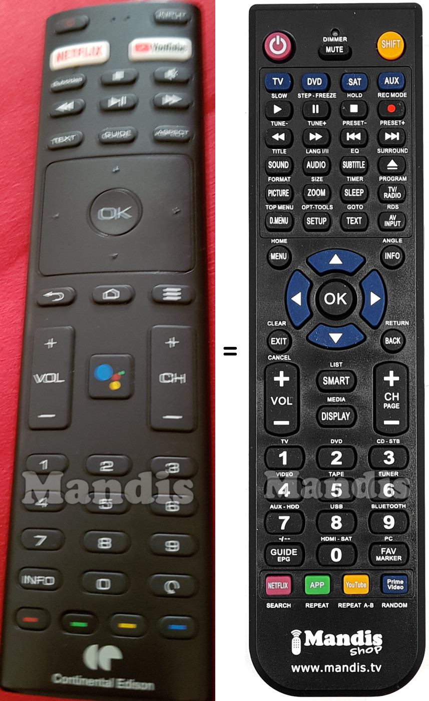 Di seguito, vi mostreremo la corrispondenza tra ciascun pulsante del telecomando originale e il pulsante che svolge la stessa funzione sul telecomando di sostituzione. In alcuni casi, potrebbe essere necessario premere il tasto SHIFT prima di premere un altro pulsante per eseguire determinate azioni. Queste funzioni aggiuntive sono spesso poco utilizzate e sono incluse per facilitare la comprensione del telecomando di sostituzione, o perché il telecomando originale ha più pulsanti rispetto al suo equivalente.
