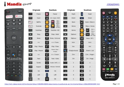È incluso un documento per aiutarti a utilizzare facilmente il nuovo telecomando, indicando la corrispondenza dei pulsanti.