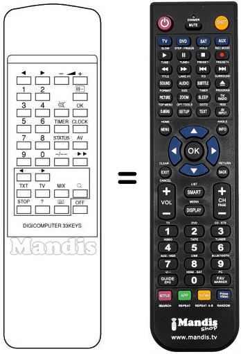 Telecomando che sostituisce l’originale DIGICOMPUTER 33 KEYS in tutte le sue funzioni.